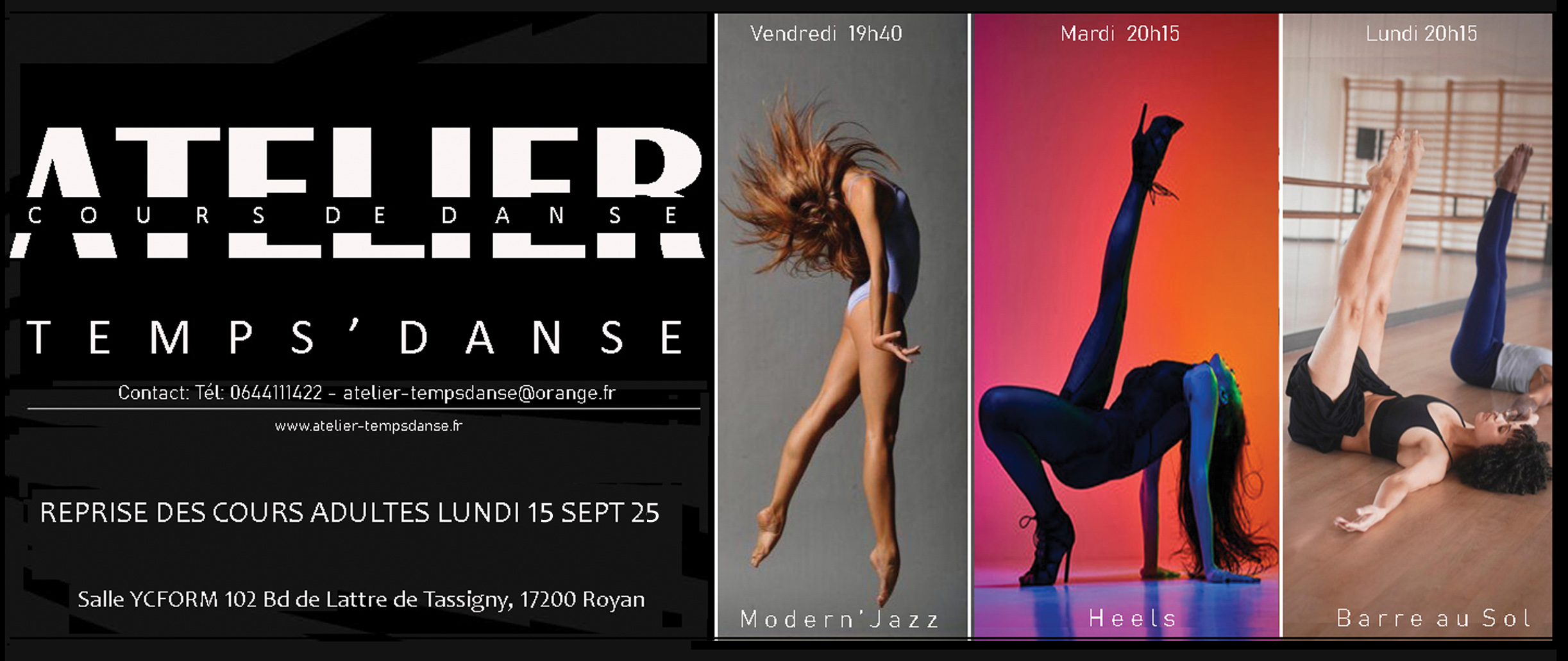 REPRISE DES COURS ADULTE LE LUNDI 15/09/25 Salle Ycform 102 BLD Lattre de Tassigny 17200 Royan Parking Cinéma |